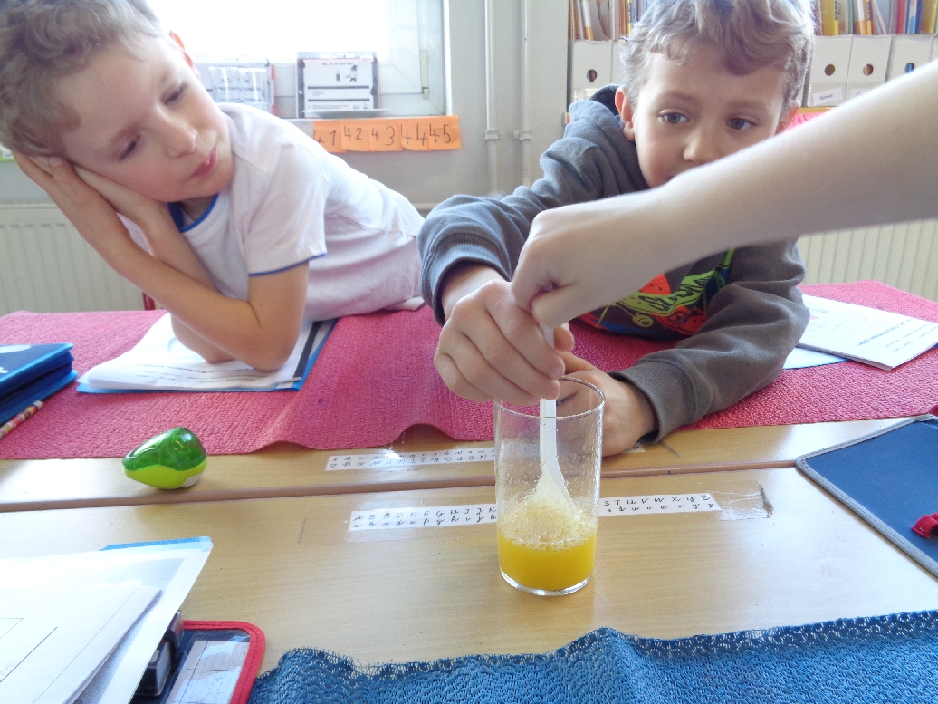 | Julian (1a): | "Als wir die Luft in das andere Glas rübergeleitet haben, das war cool." |