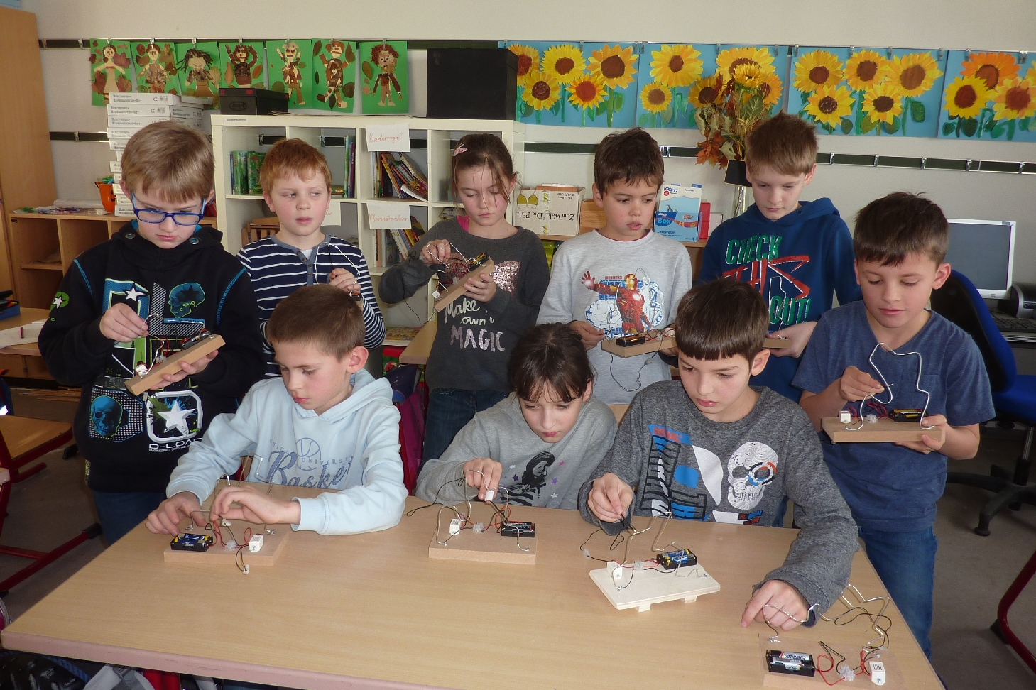 | Alexander (4): | "Mir hat am besten gefallen, dass wir ein elektrisches Spiel gebaut haben. Es heißt: „Der heiße Draht“." |