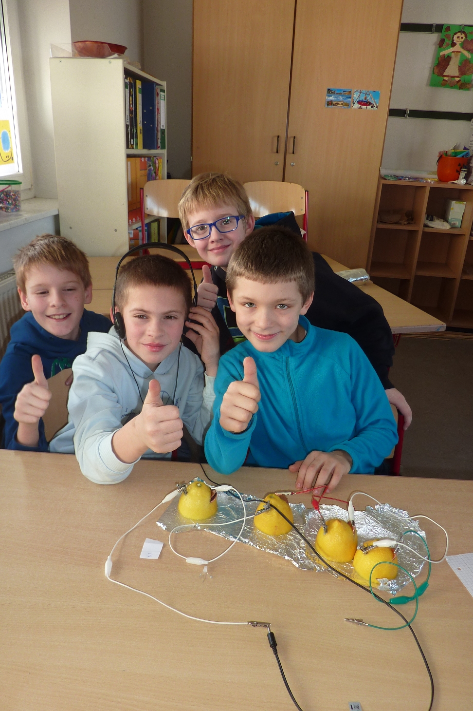 | Louisa (3): | "Am besten haben mir die Experimente gefallen, als wir Strom mit Hilfe von Zitronen, Orangen und Kartoffeln gewonnen haben." |