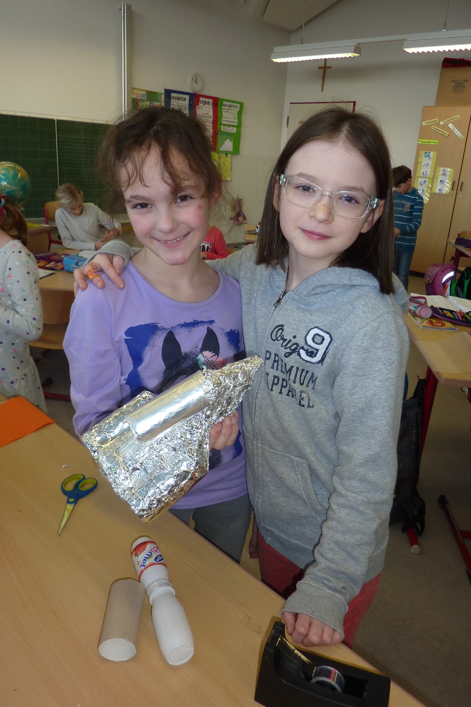 | Jasmin u. David (2): | "Am besten war die Luftrakete und wie das Auto mit Hilfe des Luftballons gefahren ist." |