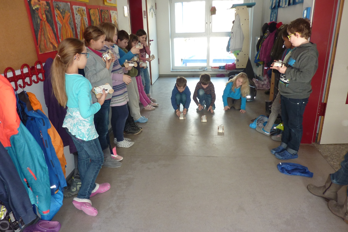 | Laura (4): | "Am besten hat mir gefallen, dass wir ein Auto mit Elektromotor bauen konnten und anschließend ein Autorennen gemacht haben." |